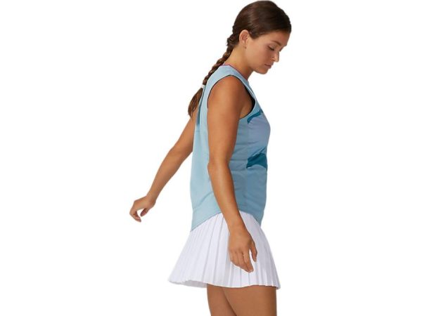 The MATCH GRAPHIC TANK features water repellent mesh paneling to help tennis athletes keep dry and cool on the tennis court. Constructed with a ribbed collar and sunflare print, this top is also designed with recycled materials to support a more sustainable manufacturing approach.