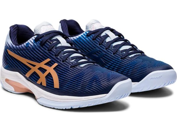 When you’re playing a high-impact sport like tennis, you need technically advanced footwear that’s going to protect your feet and knees. The women’s SOLUTION SPEED™ FF tennis shoe by ASICS boasts an unrivalled blend of style and supportive technology. With its lightweight cushioning, this shoe is designed to propel you to greater heights on the court. It features FLYTEFOAM® technology in the midsole, an organic compound made from organic fibers that doesn’t create the “packing out” that so often happens with softer, lower density foams. It also features the TWISTRUSS™ System, which absorbs shock while allowing the foot a full range of movement. It boasts rear and forefoot GEL® technology, providing unparalleled comfort and shock absorption. Meanwhile, the FLEXION FIT® upper gives added stability for lightning-quick movement during your game and the ORTHOLITE™ sockliner is removable to accommodate a medical orthotic. The SOLUTION SPEED™ FF tennis shoe boasts a durable tennis AHAR® outsole, FLEXION FIT® vamps and PGUARD™ toe protector, as well as an Anti-Gravel Tongue that repels dirt and debris, so nothing will get in the way of your game. It all makes for a durable shoe that you can really put through its paces on court.